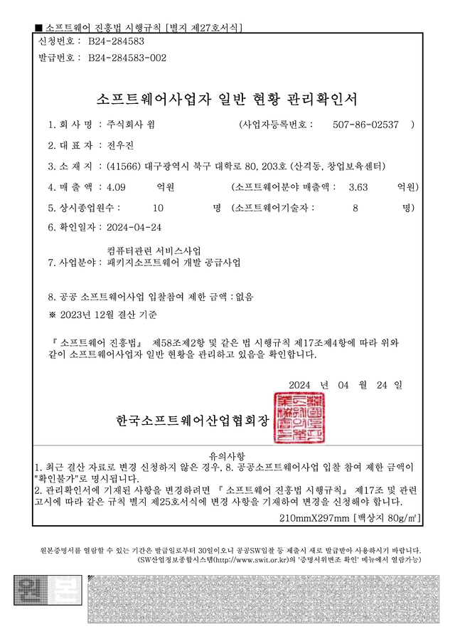 Selected for the Start-up Success Package, Youth Start-up Academy (Daegu 12th Cohort) by KOSME