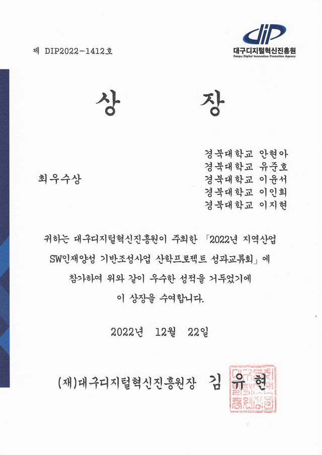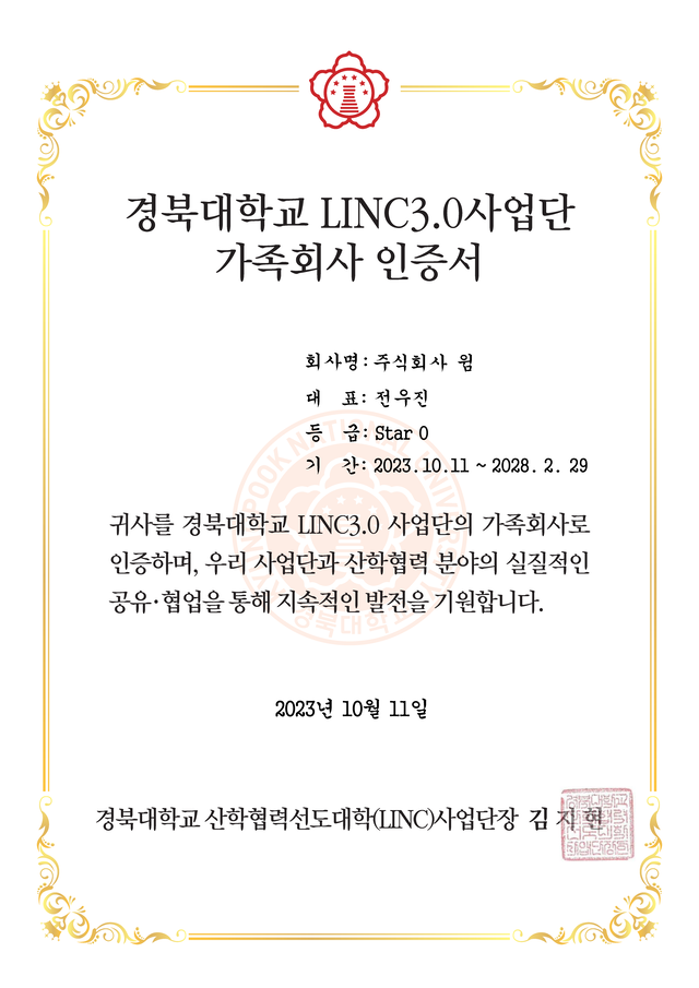 HEAD OFFICE 203, Business Incubation Center, Kyungpook National University, 80, Daehak-ro, Buk-gu, Daegu, Korea